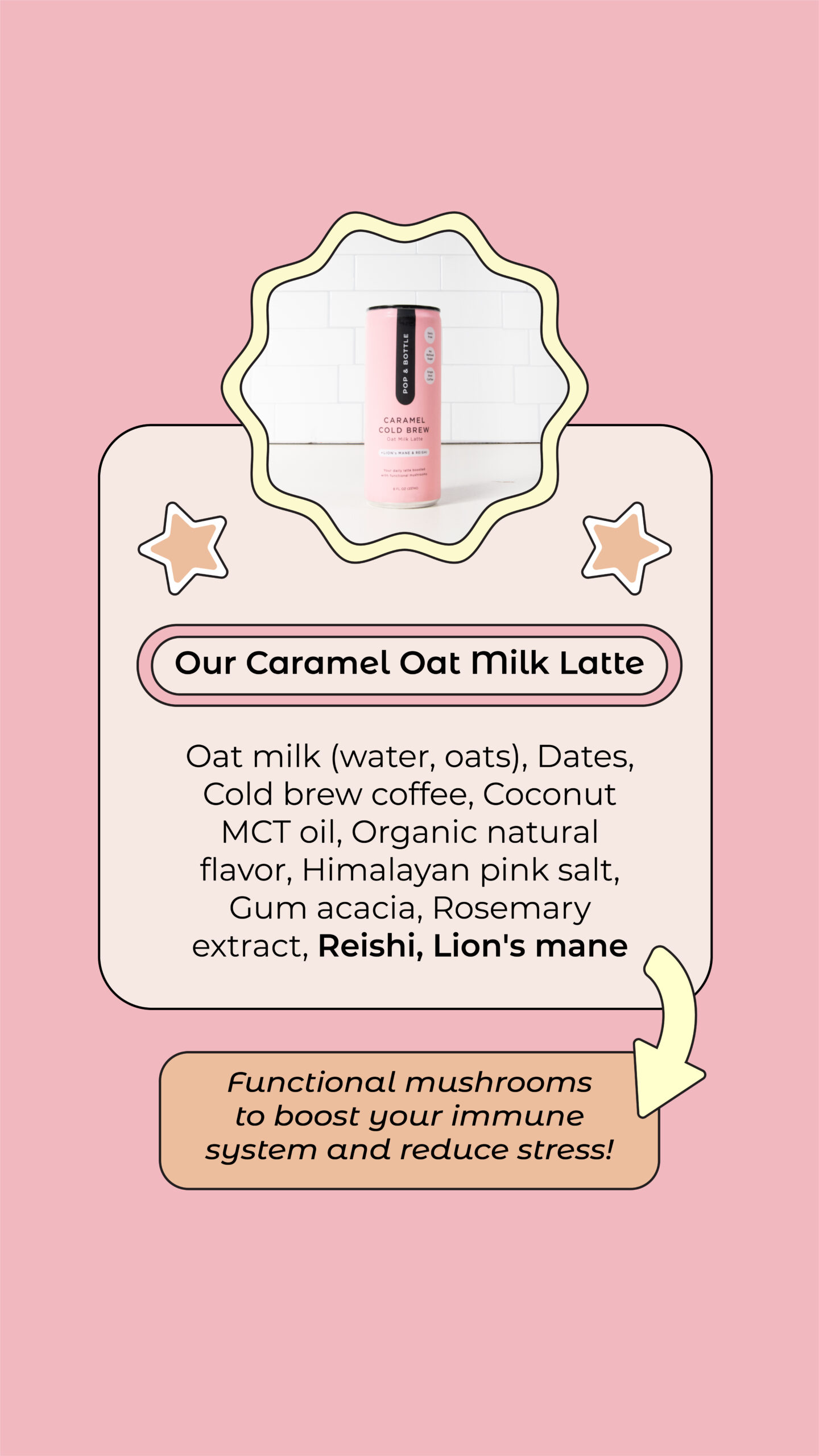 Pop & Bottle Caramel Oat Milk Latte with Lion's Mane and Reishi, Organic, 8 fl oz